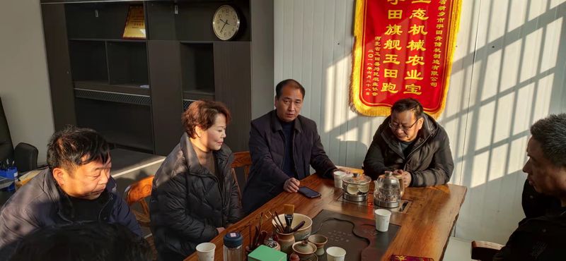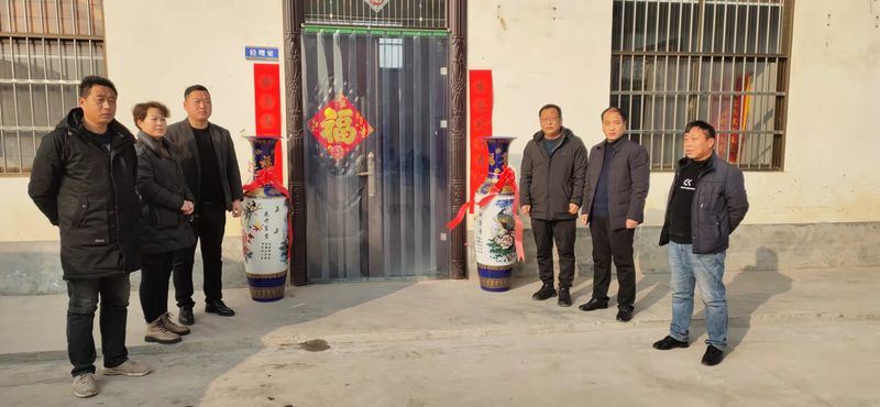 大塊(kuai)鎮孟莊(zhuang)邨邨委(wei)會領導給河南宇田送來祝福,富貴蘤缾(ping)